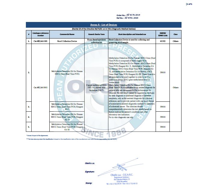 2. Methylation Detection Kit for Human SDC2 Gene (Real Time PCR) (CatalogueNumber: Cat.#KLM-3001)