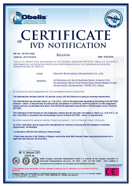 This fulfillment declares that Colosafe meets all the legal requirements for CE marking and can be sold throughout the European Economic Area and other areas where CE Marking is accepted.CE Marking exhibits the significance that Colosafe can be traded in the EEA without restrictions as well as that consumers enjoy the same level of health, safety, and environmental protection throughout the entire EEA and other areas where CE is highly recognized. Bearing the "Human Health,My Mission"in our hearts,we, at Creative Biosciences, are striving hard to have people from all corners of the world benefit from our globally recognized top brand Colosafe proudly made in China.