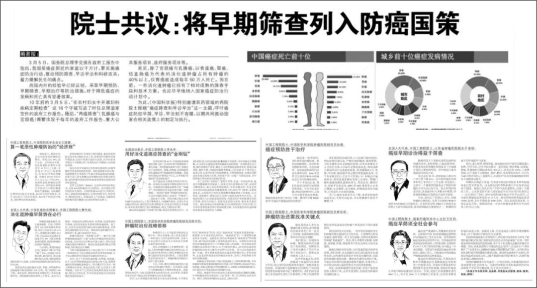 近 年来,广州、上海、天津、浙江等经济发达省市已陆续将结直肠癌早期筛查纳入政府重大公共卫生服务项目,为我国结直肠癌早诊早治探索了一定的经验。特别是在 今年第十三届全国人民代表大会第二次会议上,国务院总理李克强着重强调“要实施癌症防治行动,推进预防筛查、早诊早治和科研攻关,着力缓解民生的痛点。” 医学界多位院士共同呼吁“将早期筛查列入防癌国策”,众多代表也建议将癌症筛查列入政府医保。最新推出的《健康中国行动(2019-2030)》明确提出 “实施癌症防治行动。倡导积极预防癌症,推进早筛查、早诊断、早治疗,高发地区重点癌种早诊率达到55%”。2020年1月12日浙江省十三届人大第三次 会议开幕,备受关注的2020年十方面民生实事新鲜出炉,明确指出开展高危人群大肠癌筛查。